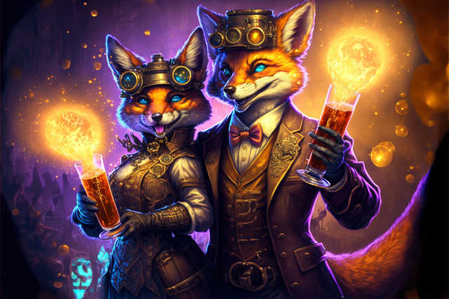 #ai #fantasy #fox #steampunk #aiart #anthropomorphic #furryanthro #hugging
