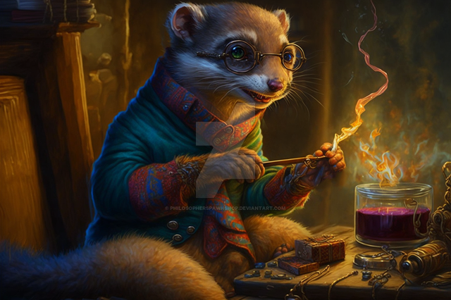 #ai #cozy #fantasy #ferret #steampunk #warm #aiart #fire #characterconcept #characterdesign #furryanthro #vividcolors