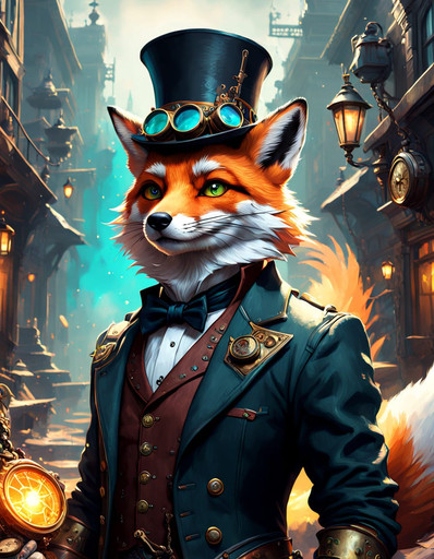 #ai #fantasy #fox #steampunk #aiart #caninecharacter