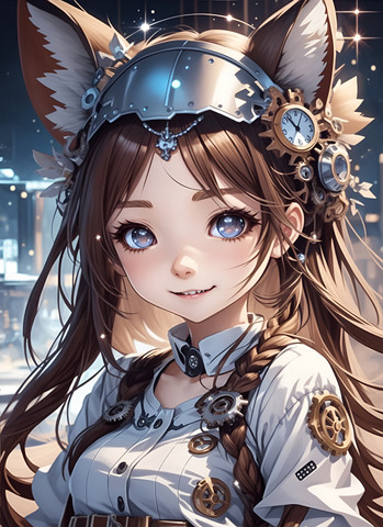 #ai #anthropomorphic #atmospheric #beautiful #characterconcept #characterdesign #cute #cyan #dark #dramaticlighting #fantasy #female #fox #foxgirl #gaze #steampunk #vividcolors #anthrocharacter #aiart #furryanthro