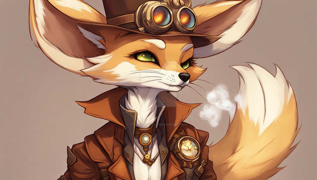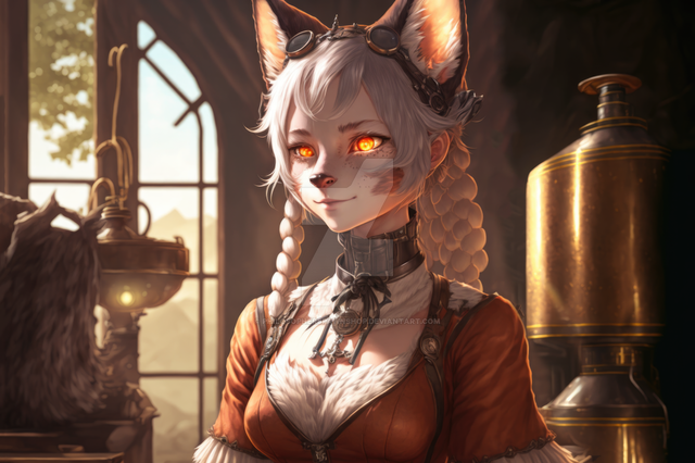 #ai #fantasy #steampunk #aiart #anthropomorphic #atmospheric #characterconcept #flirtatious #foxgirl