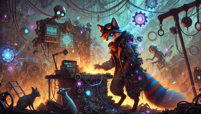 #ai #anthro #anthropomorphic #atmospheric #characterconcept #characterdesign #city #digitalart #dog #dramaticlighting #fantasy #green #orange #steampunk #turqoise #vividcolors #wallpaper #yellow #notenoughmana #anthrocharacter #aiart #fire