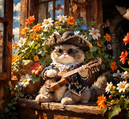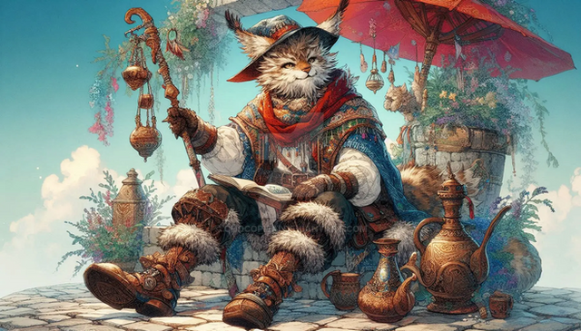 #ai #anthro #anthropomorphic #atmospheric #cat #characterconcept #characterdesign #chillaxing #dappled #digitalart #dramaticlighting #evening #fantasy #pastel #relaxing #shadows #spring #steampunk #vividcolors #wallpaper #anthrocharacter #aiart