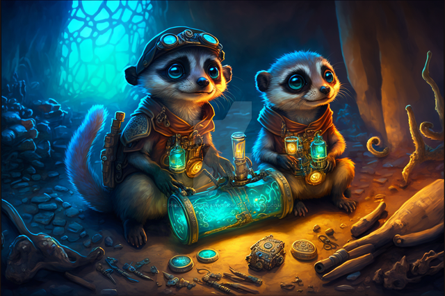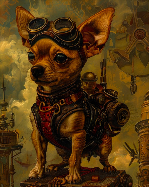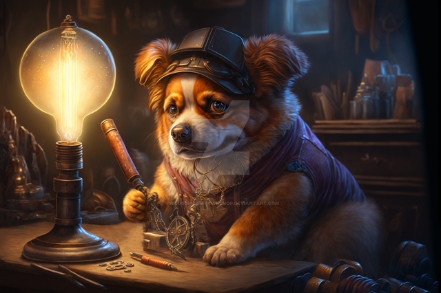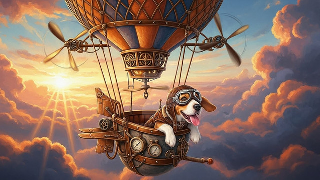 #ai #atmospheric #beagle #blue #brown #clouds #dogs #fantasy #puppies #sky #steampunk #aiart #characterconcept #characterdesign