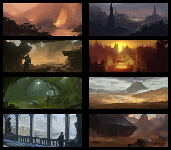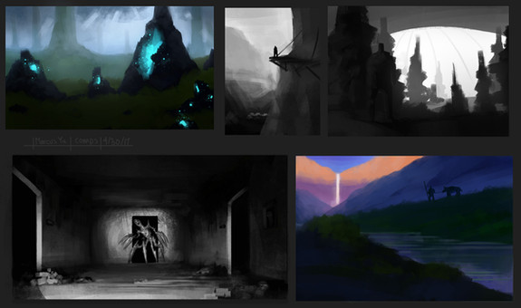 5 color studies. Try staying monochromatic at first and add in color accents on top. Feel free to use photo reference as starting points.