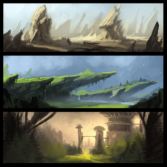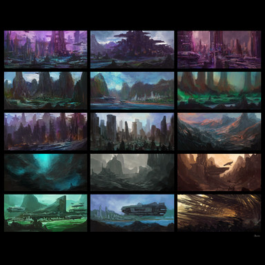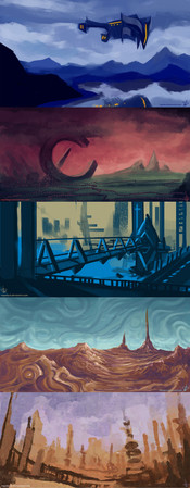 4 Colour thumbnails of scifi worlds