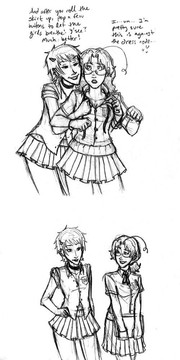 This is how I used to do in my high school xDD , and also looked down my shirt and puffed insideΒ Β