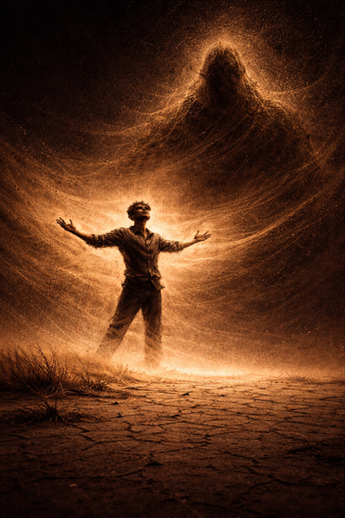 We built a rig to bury everyone waist deep in sand, while allowing them to move freely. Each of the lost souls was photographed in different configurations in the rig, allowing for a composite image that wouldn't repeat.