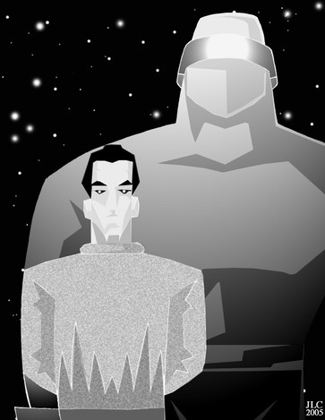 The cyborg, right after crash landing in Hangar 7A in his escape pod, "Leonardo".Download for wallpaper.