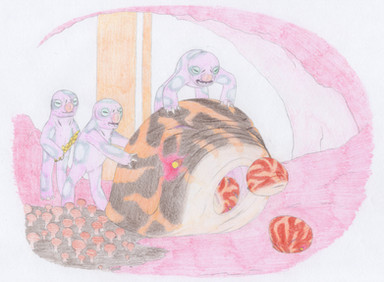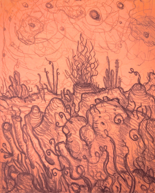 Some weird fleshy caves that obese sightless creatures called Utarefs live in.I was just doodlin and this came out then I added color with prismacolor colored pencils.