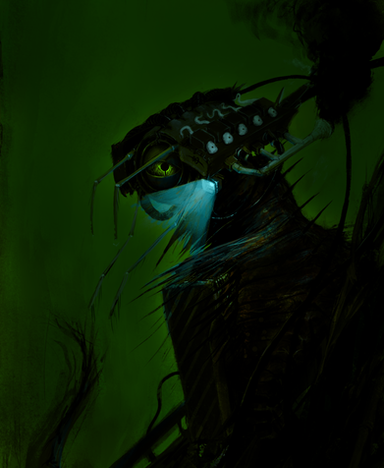 Imagine a creature made out of shadow, machine and dead cattle/goat things with red eyes and big teeth that had no lips so he was always grinning and wide eyed. This is kinda where my parasite idea from my book came from.