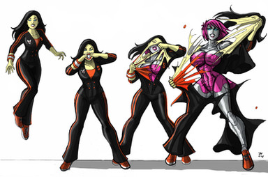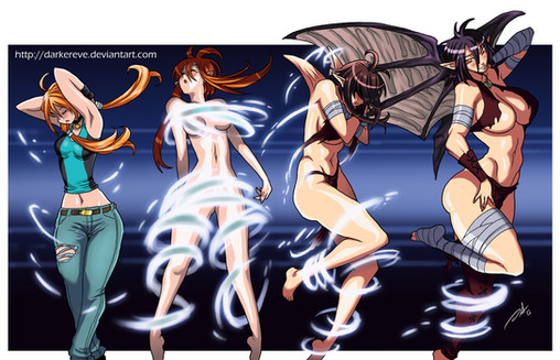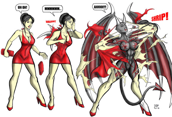 Commission for ~coltfan3000 of a sequence of a woman getting possessed by a demon. Or reverse masking.Never taken on a commission this big before, but it was fun.