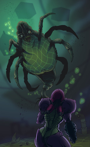 Oh haha, I was thinking it'd be embarrassing if you've already seen it. And that makes sense, I've been admiring the pencil texturing you did. But it's your digital coloring that has me looking twice. Really subtle color work, it's really very impressive how it doesn't contrast harshly with the pencil. And you're welcome, good luck in the contest. I went ahead and entered my own Queen Metroid piece.