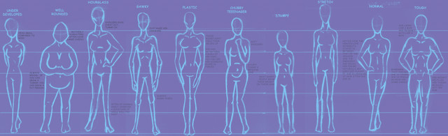 Just a quick reference guide to different bodytypes of the female figure. Please consort the genius illustrators of yesteryear for more in-depth knowledge.
