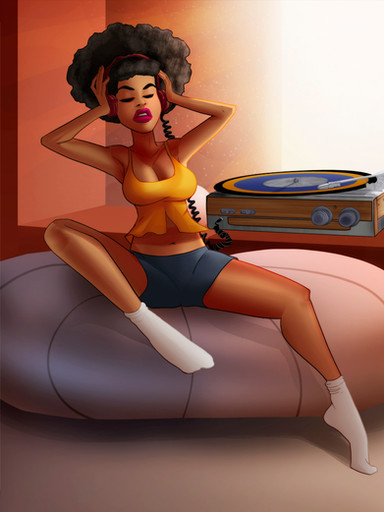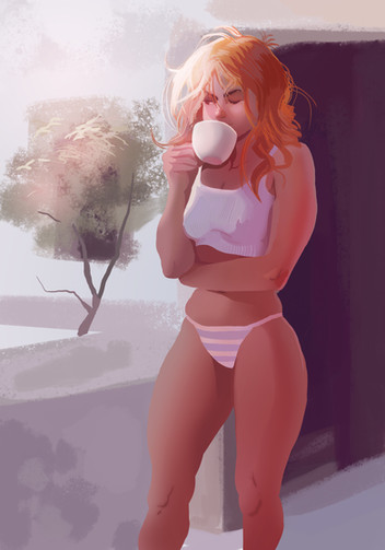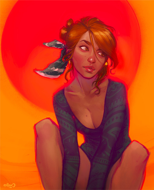 Wow, the contrast between the orange of her shirt the other colours is sublime. Very nice piece, so calming and comfy.