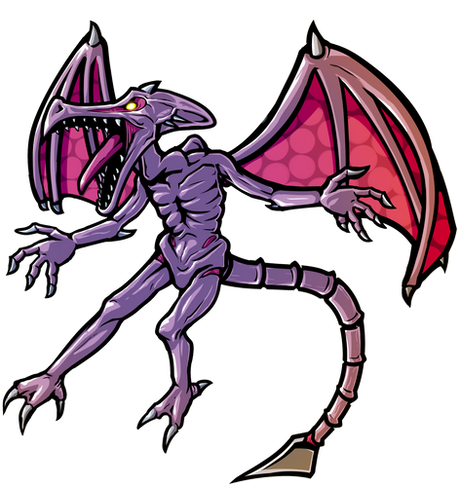 Honestly, I like the actual dragon design Nintendo went with for Ridley. Yes, it doesn't look as 'alien' as this one, but it just seems to fit imo. I also love how the design they went with makes him look like he's starving or something. The whole skin-and-bone thing is only offset by the muscle, which makes him look much more menacing than this one, especially in the 3D games like the Prime trilogy.