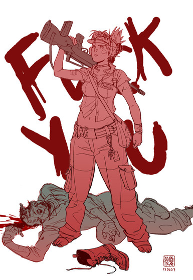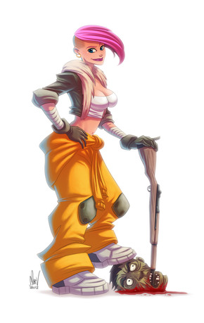 Been hankering to come up with a brand new character design for a while now, and finally came up with something I liked.I wanted to mix up the pirate design, seeing as how the design trope is quite overused. So, I mixed a little bit of the classic pirate design elements with that of modern-day pirates. This explains the machine gun and whatnot. Her crew are a bunch of Somali pirates and the like.