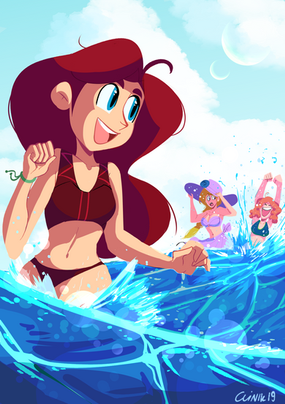 My contribution to S3rb4n 's Endless Summer Artbook- featuring Aubrey, Jolie, and S3rb4n's character, Argent.Related content