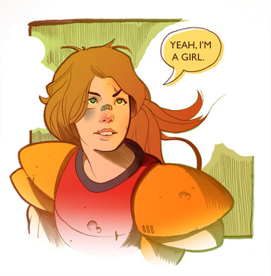 I would have liked to see her whole torso, if not her whole body...just that part of the armor looks a little weird floating in mid air, but the shading and the coloring look really good.