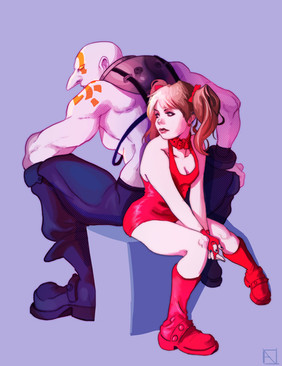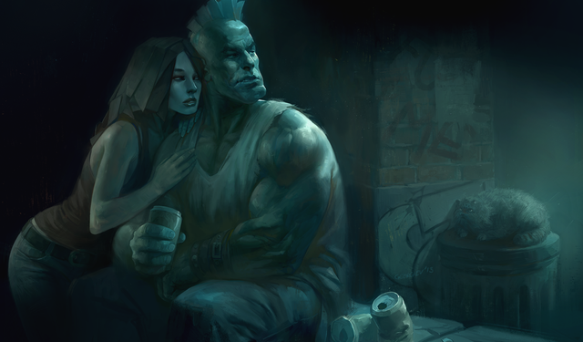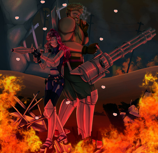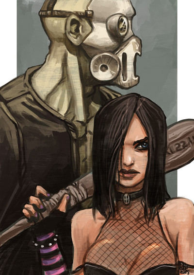 If you don't mind me giving a little bit of helpful crit, you should always keep in mind where the light source is when coloring several things. Necro and Effie both have different light sources and while either of them on their own looks fine, the fact that they're together makes it look off.