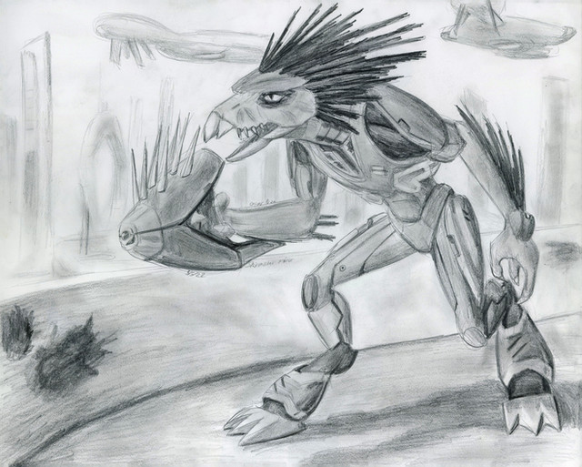 I think this is the best chozo fan art that I've seen so far. Lots of people make them "bird people." Yours looks like an alien that just happens to have some superficially birdlike features. Its also not all stylized with a ridiculously skinny waist or shoulder spikes or whatnot.