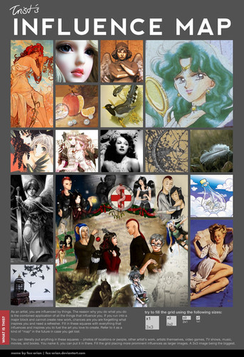 I don't really know what adjective I can use to comment on this since you didn't actually draw anything here but I think it's awesome, that from these little images, it's clear that these really are things that have influenced you since you apply a lot of the visual elements present in those artworks in your own art. I hope to see you grow even more. Keep on being amazing!!!