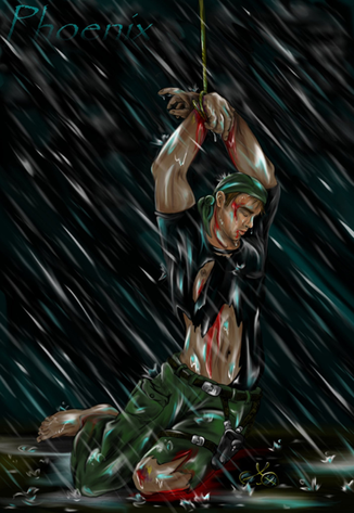 I can't believe I hadn't faved this! It's absolutely incredible, the amount of detail you've gone to is is magnificent, I especially love the blood and (what I assume is) sweat, and the shackles, very inventive!
