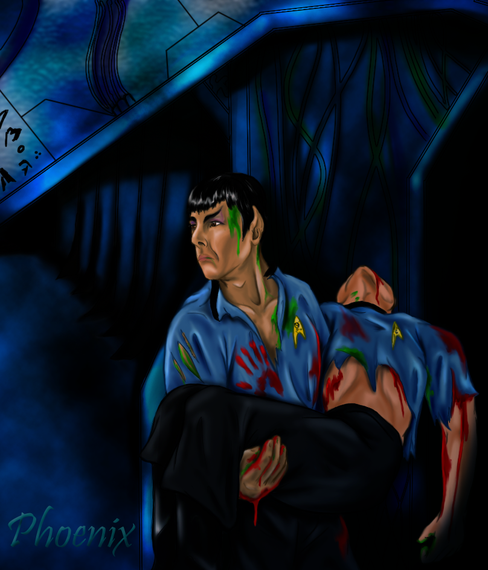 Aww, poor Spock. This makes me feel really bad for him. I like all the kind of green detailing you did. Great pic.