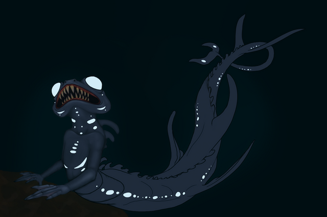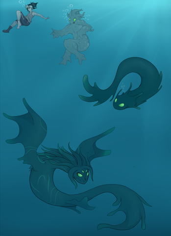 At least, near the surface. She was used to swimming in estuaries, through lagoons and aqueducts. There was no pressure up there. Down here, it was all-consuming. Down here, she had to exert herself constantly to resist the ocean's ever tightening squeeze. The act of swimming became a battle as she felt her torso compress further, the gaps between her organs shrinking. She had long given up forming anything resembling bones, deciding instead to take a page from the book of sharks.