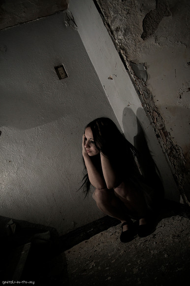 Angsty -the feeling more appreciated in the imaged- is equal to shame...and the shame could be hide in a dark room....and the dark room -our interior- is not precisely a clean please: Our interior has damp walls about to collapse...has a little window that looks as a deathtrap. Impossible to run away. We are our own trap...Our own grave....and the metallic gray of the tone reflex this quiet desesperation. Even the woman seems scream, I only listen....silence. Silence. Silence. But a silence who cuts....a silence that hurts deeply. I have cried to this amazing photo. Is so, so far of the beauty, and, at same time, the reflex of the genuine beauty of a tortured human being.
