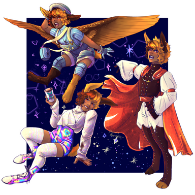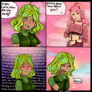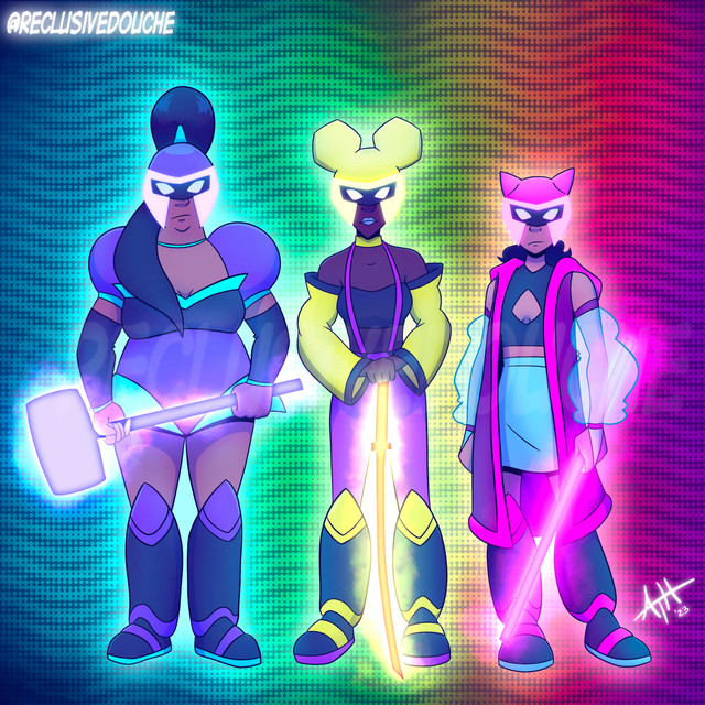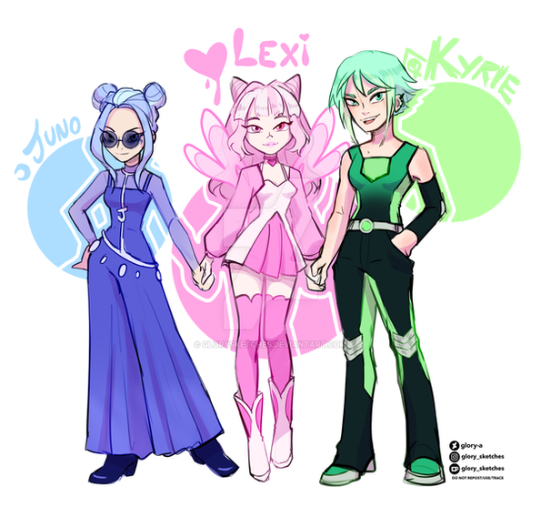 #blue #conseptart #digitalpainting #green #pink #absoluteterritory #bluehairedgirl #characterdesign #fantasy #fantasygirl #fantasyillustration #gloves #greenhair #hearts #highheels #horns #kneehighboots #originalcharacters #pinkhairgirl #hornedgirl #darkskinnedgirl #hornsgirl #clipstudiopaint