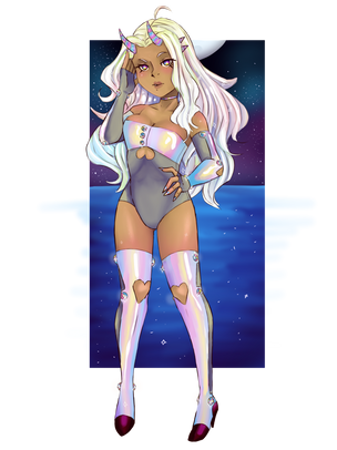 for a while now I've been molding a new story I idea but as of resent I've found a new love, colorful gem like hair so why not combine them?I wont get into too much here as im still thinking these thing out but I will show the main characters beta design
