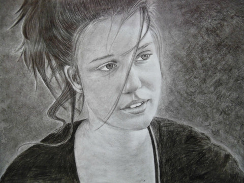 Wow, i thought it was a photo in small size. Very realisitic looking.. i've gotta try out the black and white charchol and white conte for the lips. Well done!