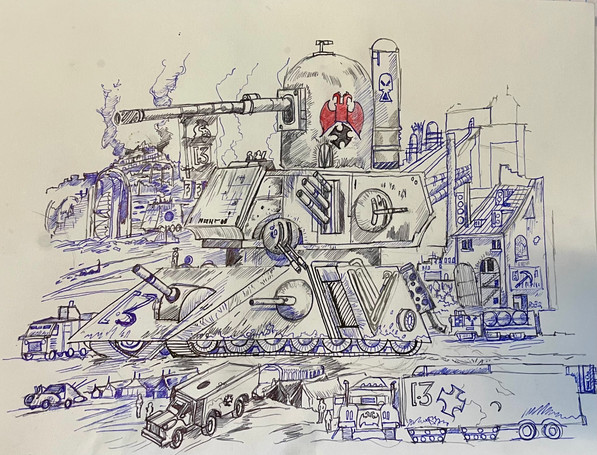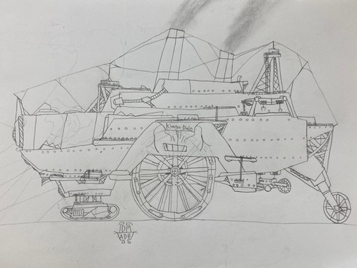Just a scribble i did when i was bored at work. Inspired by a story my brother was telling me, which had a steampunk styled armour vehicle,and i just had to draw itDone in ink