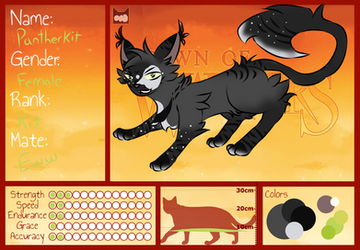 - Gets along fairly well with her siblings and denmates the Larkshimmer, TwiMoose and "LittleDove" kits and establishes herself as a social butterfly with a love of attention however the nursery certainly feels cramped and she feels starved for attention by having to compete with both siblings and the other kits and feels a competativeness with Littlestar and Twilighthearts respective litters especially.