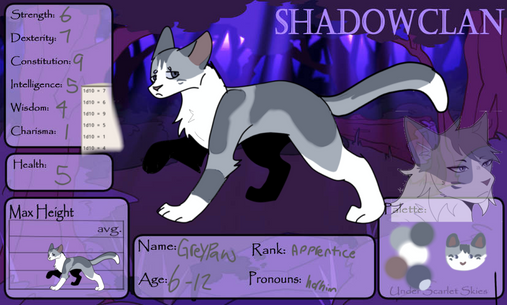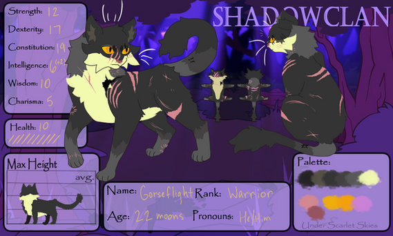 Sly - Shadowmoth has his own kind of charisma and is the sociable one of his litter, while not quite as manipulative as his sibling Shadowmoth does take enjoyment in seeing what he can get others to do by appealing to their wants and needs and in general he just prefers a cunning approach to battle.