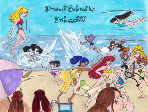 Wow, very big picture with lots of charicters. Very nice. I like all the charicters, many look very pretty in thier swimsuits. The Fishmen look very funny too. Good job.