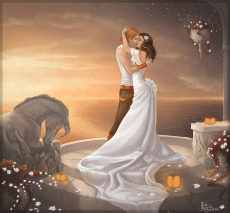 This is gorgeously done. I love the colors, and the looks of endearment on both their faces, the ways they're holding each other...not too tightly, but still not too loose. Excellent, EXCELLENT job with this.