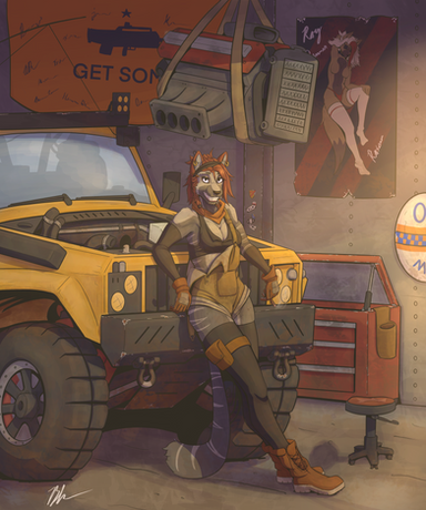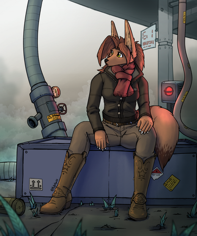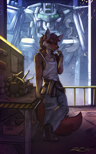 #digitalart #anthro #anthropomorphic #foxanthro #mechanic #postapocalypse #postapocalyptic #redfox