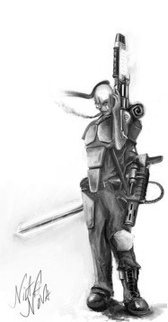 Yeah. Totally /tg/ related. Did this ages ago. Not sure if anyone really remembers but what the hey...Thinking about it, it may not have been an official drawthread. It was done about the time this one fella sculpted/kitbashed a non-scale female marine. I heard he sold it for a nice chunk of change. Might've been Cool Mini or Not