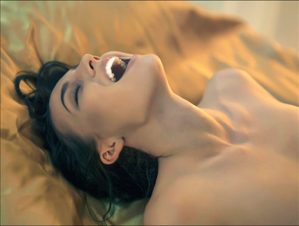 Incredible hips and breasts. The stretch could mean pleasure or pain... or both. The background with the distorted mirror is just great! Phenomenal lighting.
