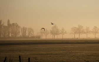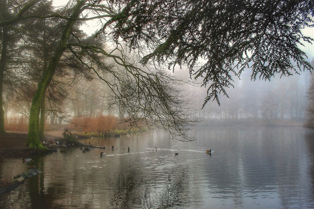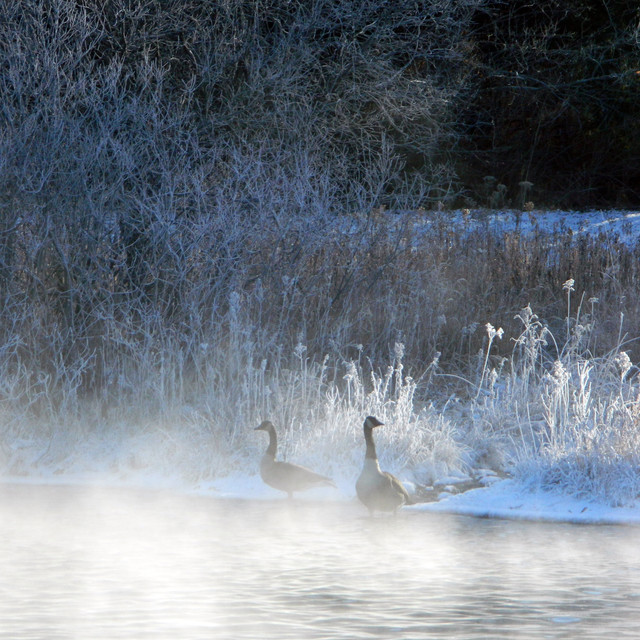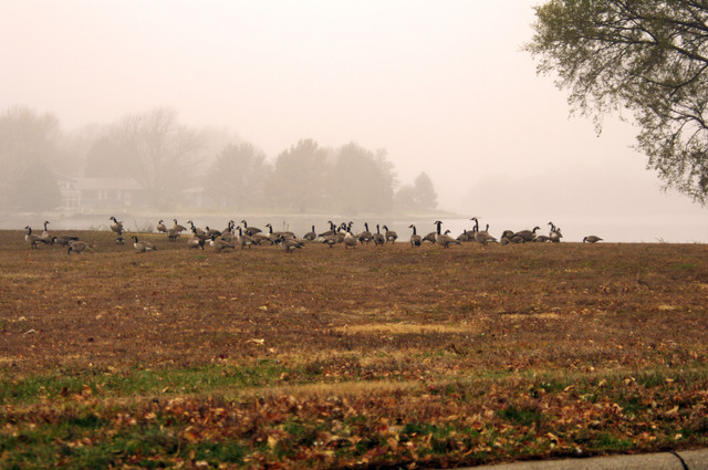 Early morning fog with Canadian Geese and ducks on the lake....a sign of Spring .... finally.