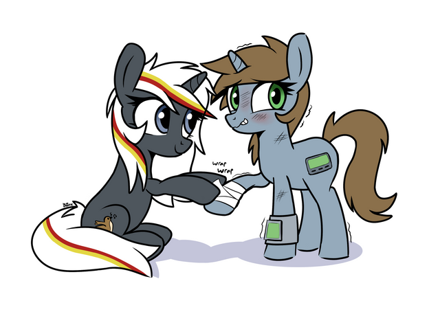 “Howdy! Pleased t’ meet the little mare with the PipBuck who saved Sweet Apple and Ditzy Doo! Not t’ mention Desert Rose, Barrel Cactus an’ Turquoise!” He stopped to shake my hoof vigorously.