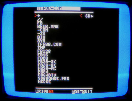 An alternative (graphical) file browser offered by the SD2IEC SD card. This has different icons to show if something is a folder, executable program, BASIC program, etc. You can access this file browser through the Commodore 64 Tools and Utilities menu in the SD2IEC interface.Related content