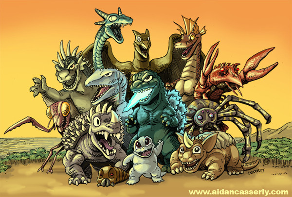 Beautiful yet I get the feeling you've got Godzilla and Duncan's sizes reversed hehe.