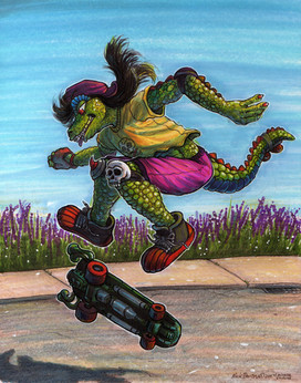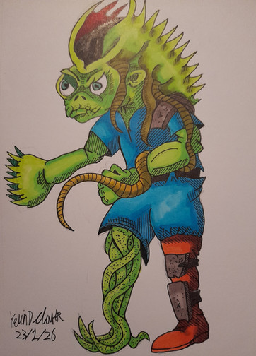 This is Wyrm from the original Teenage Mutant Ninja Turtles action figure series. He's either a mutant leech or worm but I'm not really sure since he's got tentacles & suckers like an octopus. ( I wonder if they ever did a mutant octopus in TMNT ). He appeared in the Archie Comics TMNT series and he may have shown up in an episode of the old cartoon.Ummm... anyway, my version is pretty much solely based on the action figure made in the early 90s. It took a while to figure out what was on his toe... and I'm still not sure, but it looks kinda like some sort of tag... so, that's what it turned into.