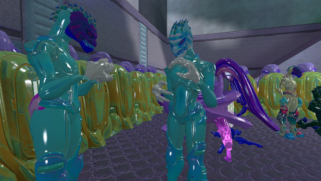 Well - I've sent it all off to be rendered and it's basically done, but I've discovered little groups of 1 or 2 frames where weird things happened to the body suit - got sucked into the chest, suddenly disappeared, and for one frame suddenly assumed the form of a human female around the alien. I'm "on the road" this weekend, but I'll be back at it this week and should have a lot of stuff in the next week. I've got LOTS of rendered frames.
