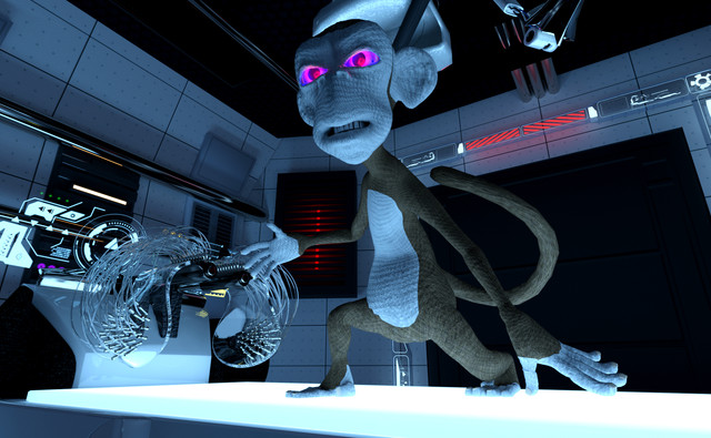 Testing a number of things here: the fingers lining up on the buttons (more obvious in the animated version - stay tuned!) as well as a number of lighting and reflection thingies.My favorite part may be the eyes - those colored dots along the bottom are the reflection of the display, which in turn is displaying the the button presses (this is not the final state of the display - just a test). The display above (off screen) also has the same display - and you can see that in the reflection along the top of the eyes.