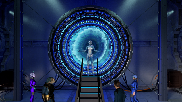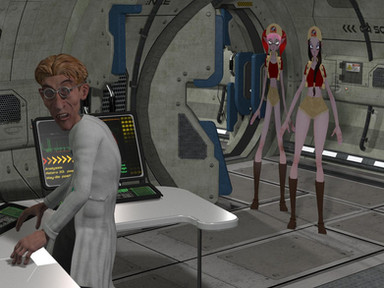Still days out from Earth, and after having confirmed that the Transmogrifier™ could give them a passable, human appearance, Bp and Çr discuss whether Az would be able to pilot the shuttle saucer to the Earth's surface while in the form of a human female. It's looking like they may have to go with Plan B. Poser Pro 2014