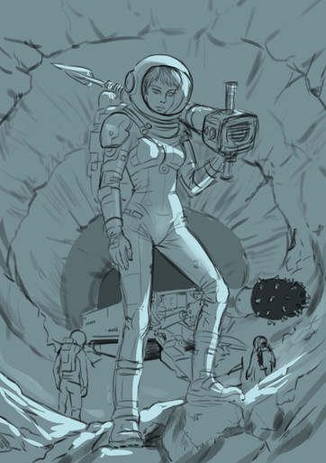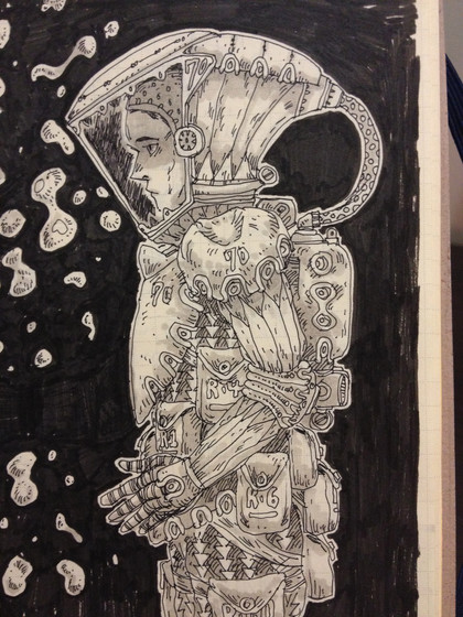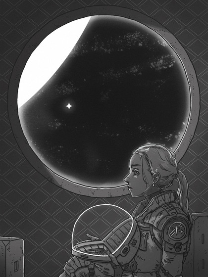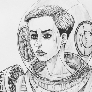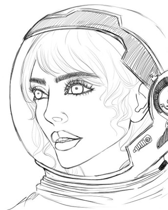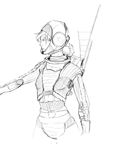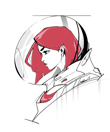 A detail from a work in progress. This is just the basic linework, I'll be coloring it at some point.A new pilot waiting for her first solo flight.